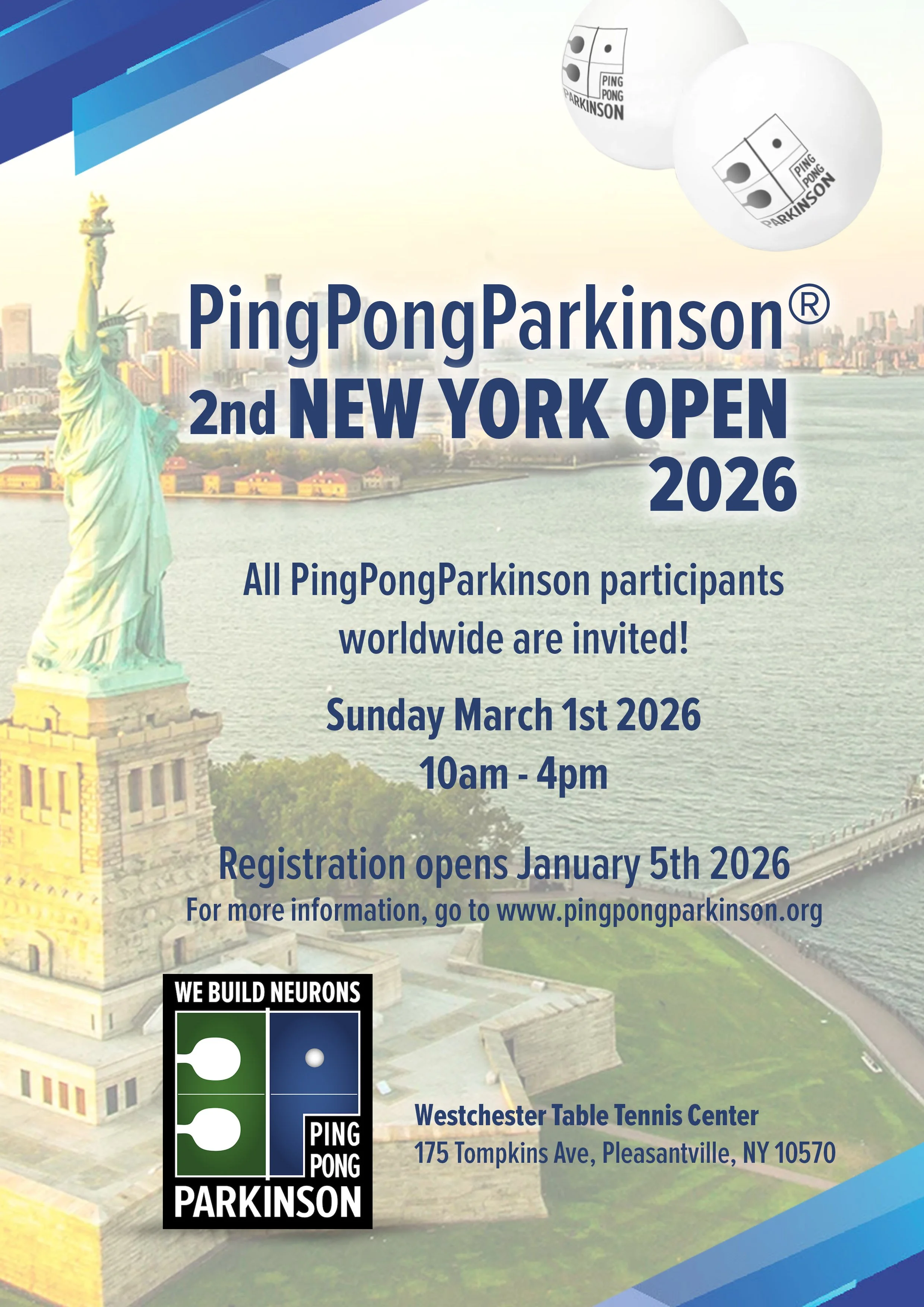 Registration for the 2nd PingPongParkinson New York Open on March 1st 2026 is open!